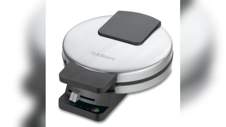 The Cuisinart Classic Round Waffle Maker is a home kitchen appliance designed to bake large, traditional-style waffles with deep pockets for toppings. It solves the problem of uneven or undercooked waffles with its 5-setting adjustable browning control, so you can get your waffles just how you like them—from light and fluffy to dark and crispy.