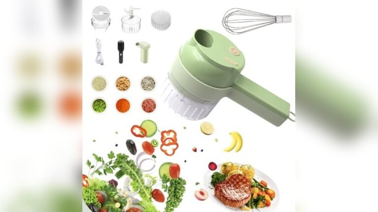 This electric vegetable cutter from MOTPIUOC combines four functions in one compact device, including chopping, slicing, peeling, and whisking. It’s designed to simplify food preparation by handling various ingredients such as garlic, chili, celery, and even meat. The set includes multiple accessories like blades, a cleaning brush, and a charging cable, making it a complete kitchen companion. Its simple hole installation allows long ingredients to be inserted easily without complicated steps.